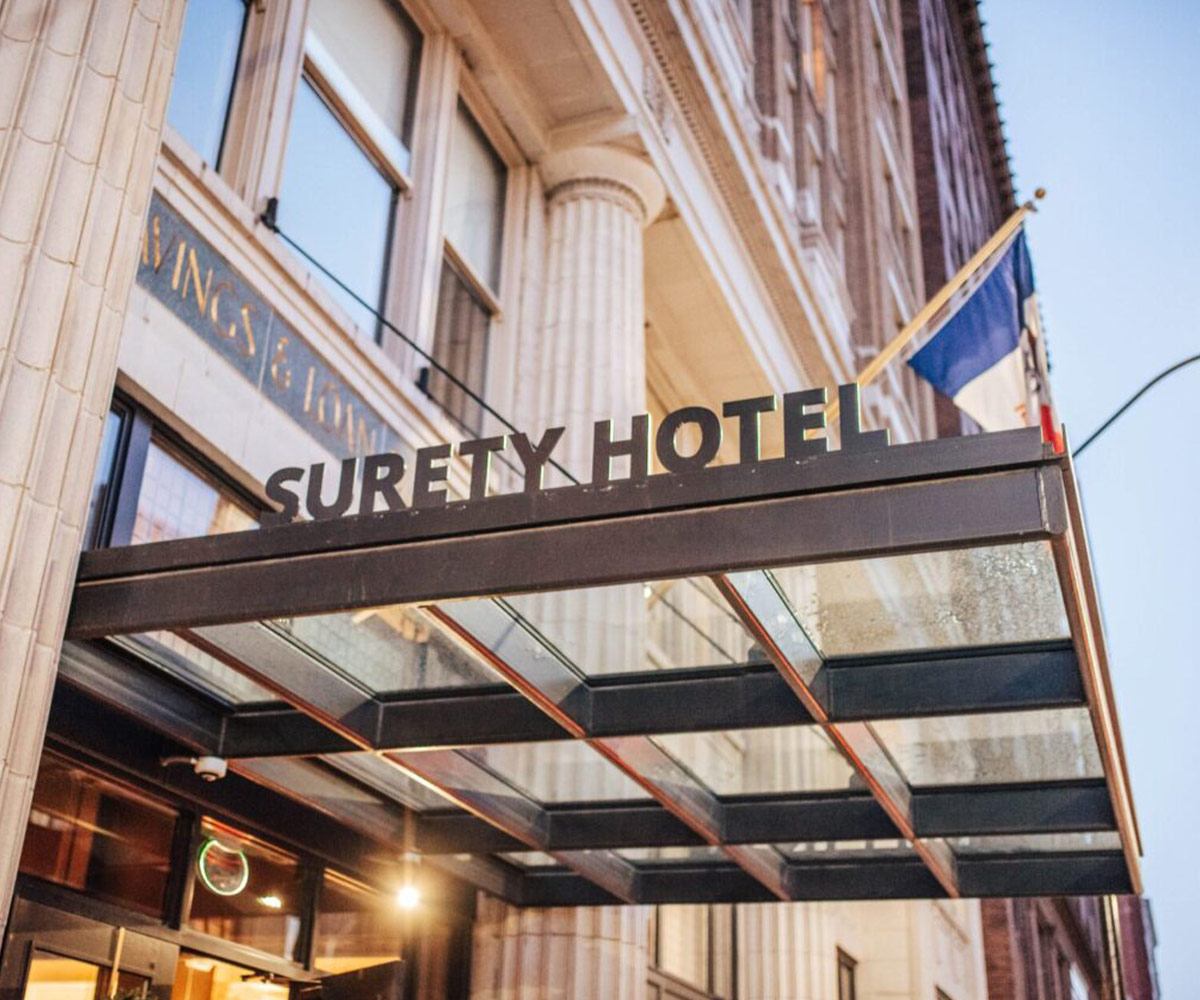 A boutique hotel situated in beautifully refurbished, historic bank in downtown Des Moines. With unmatched service and a deep commitment to your comfort, Surety offers simply sumptuous guestrooms, a contemporary tavern, and several stunning gathering spaces, all created to set a new standard in Des Moines and beyond. We believe in combining the wide-armed welcoming spirit of the Midwest with the best modern hotel experience.